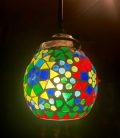 石膏にガラスでモザイク模様を描きました。点灯時と消灯時で違った表情に。