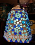 石膏にガラスでモザイク模様を描きました。点灯時と消灯時で違った表情に。