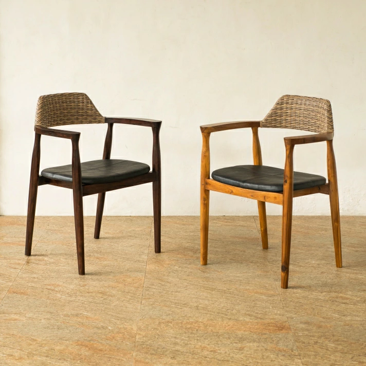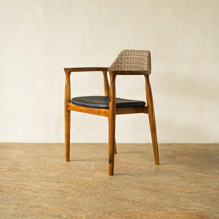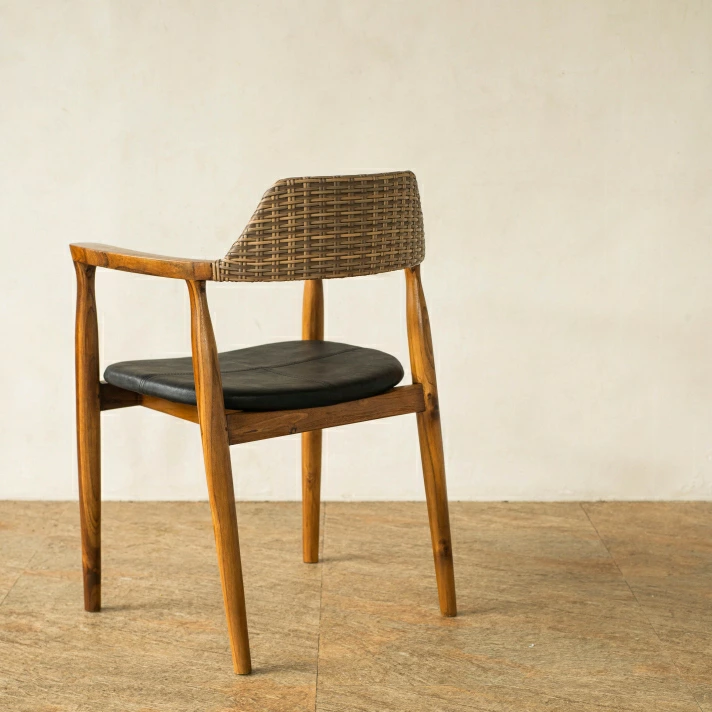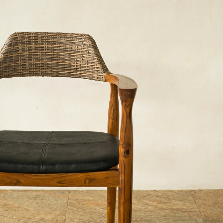 背もたれのシンセティックラタンがさりげなく美しいアクセントに。