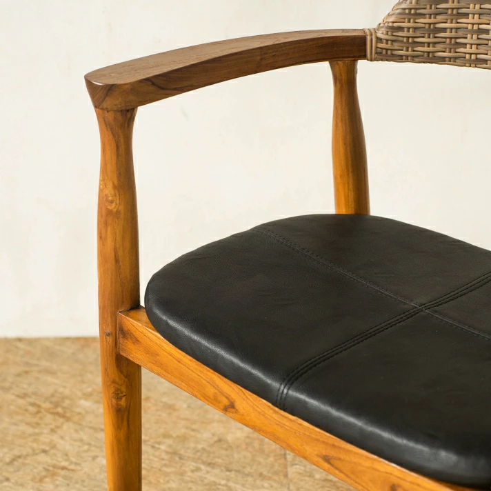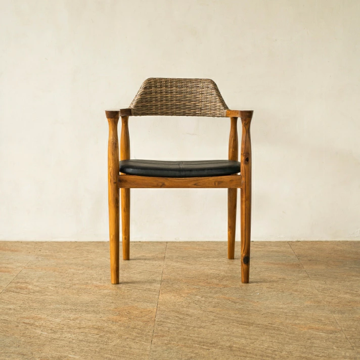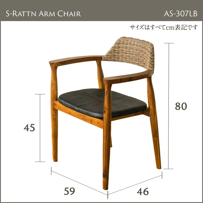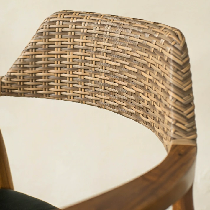 背もたれには、耐久性に優れた「シンセティックラタン」を採用。ナチュラルで軽やかな風合いが魅力です。