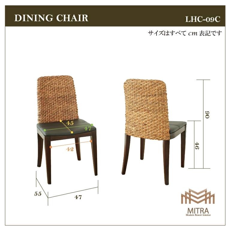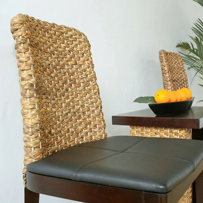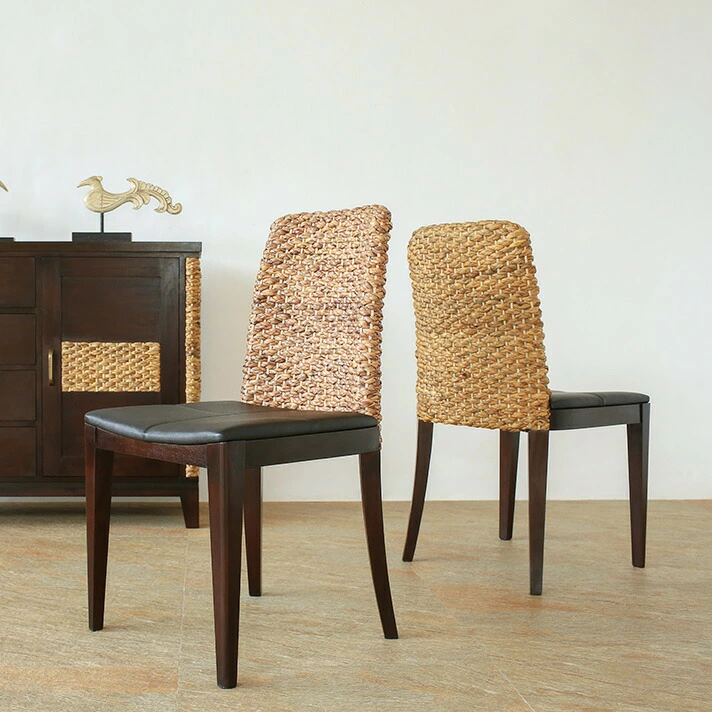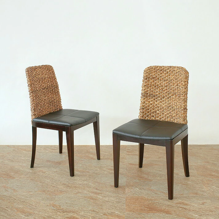 熟練した職人が一つ一つ丁寧に編み込んだウォーターヒヤシンスと高級木材のマホガニーを組み合わせた「MITRA」のダイニングチェア。