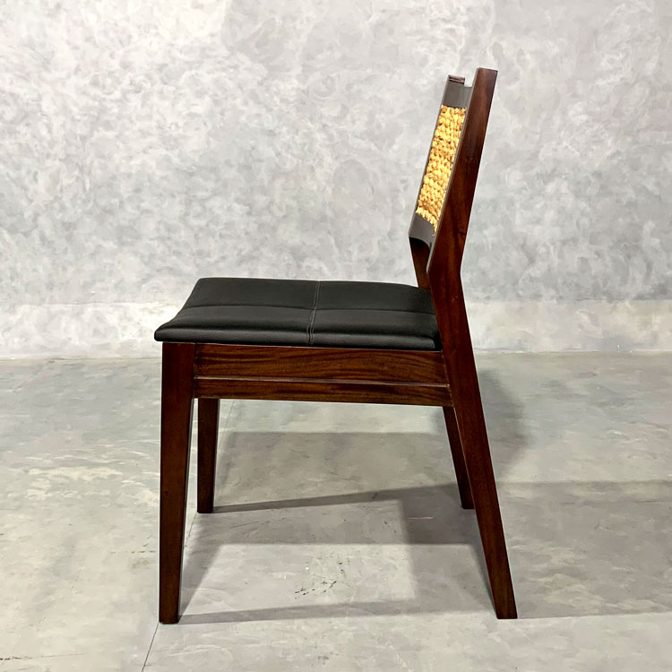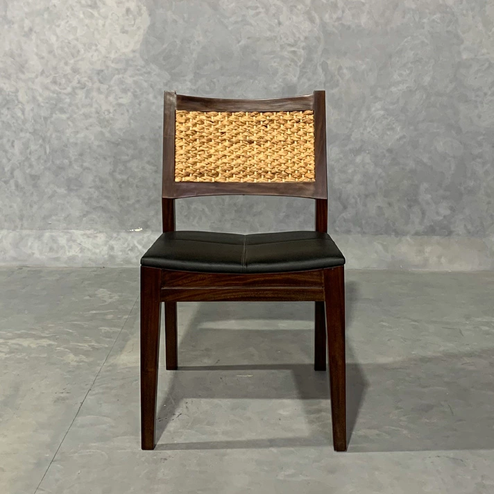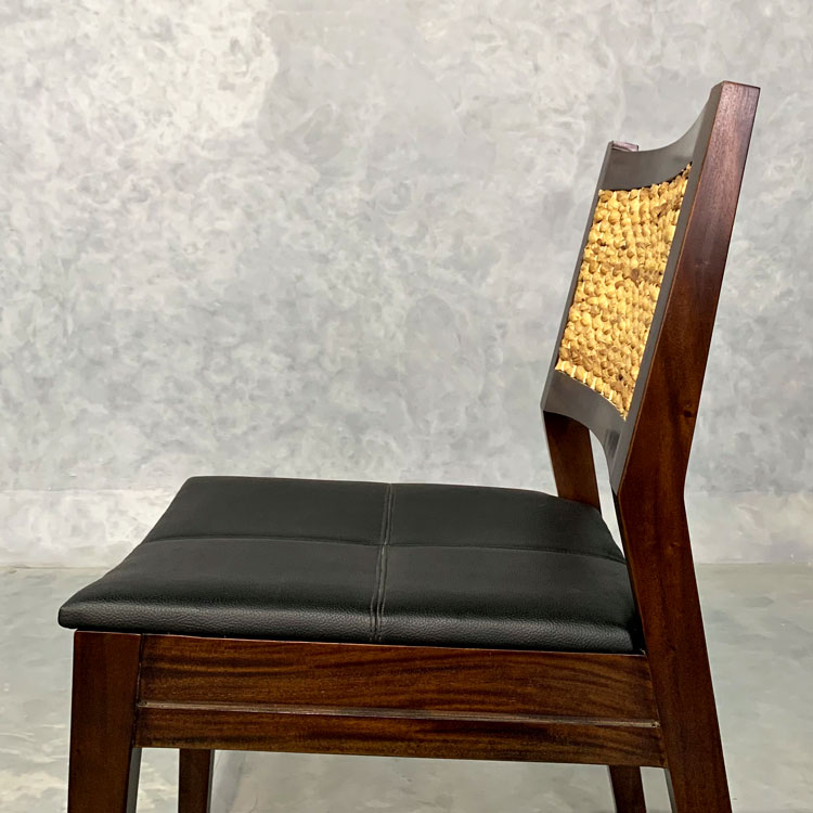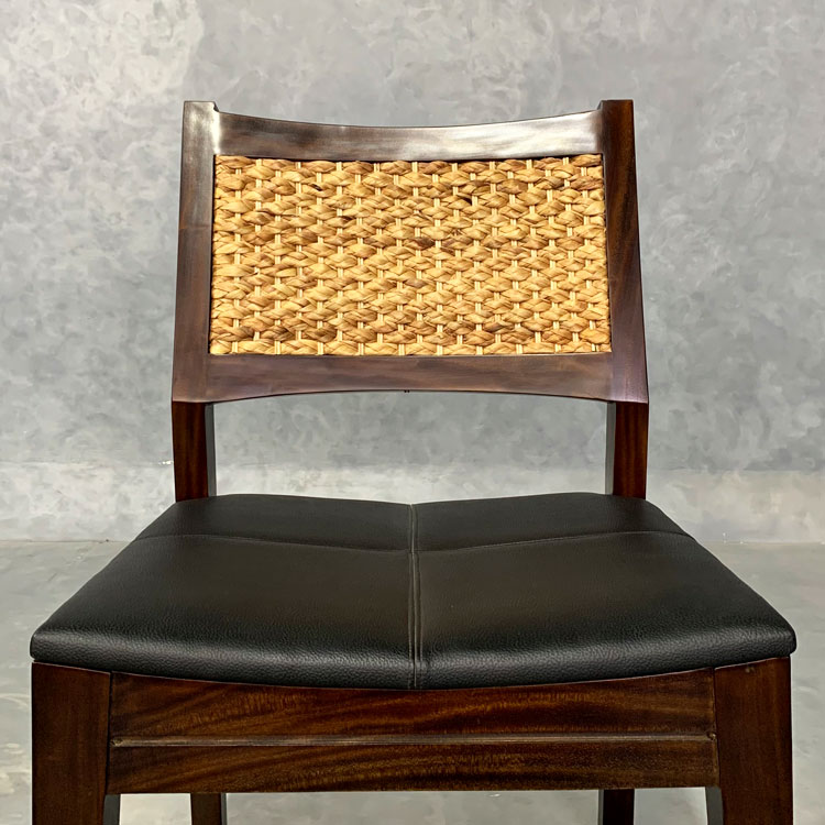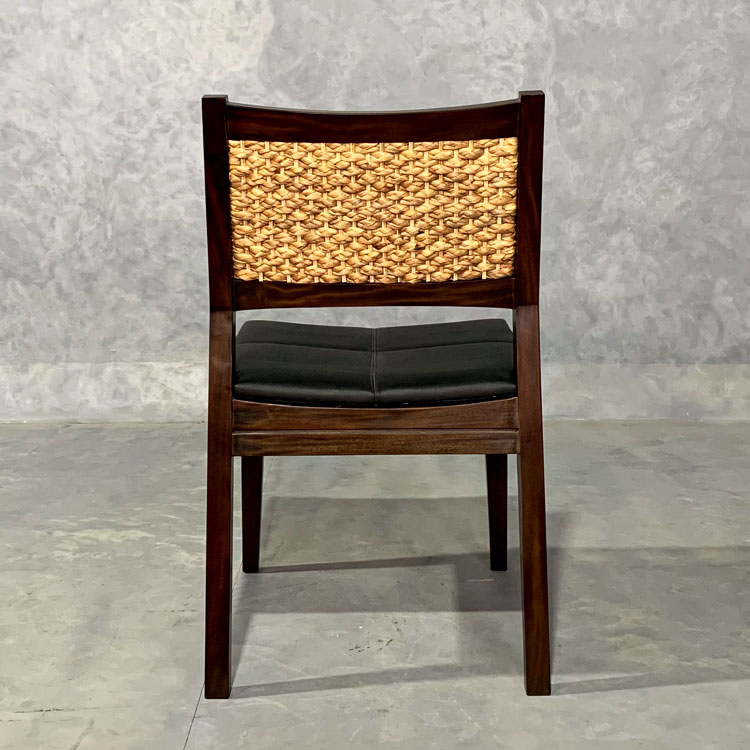 熟練した職人が一つ一つ丁寧に編み込んだウォーターヒヤシンスと高級木材のマホガニーを組み合わせた「MITRA」のダイニングチェア。