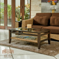 熟練した職人が一つ一つ丁寧に編み込んだウォーターヒヤシンスと高級木材のマホガニーを組み合わせた「MITRA」のローテーブル。