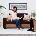 ウォーターヒヤシンスとマホガニーのコンビネーションが絶妙の重厚感あふれる2人掛けソファ。