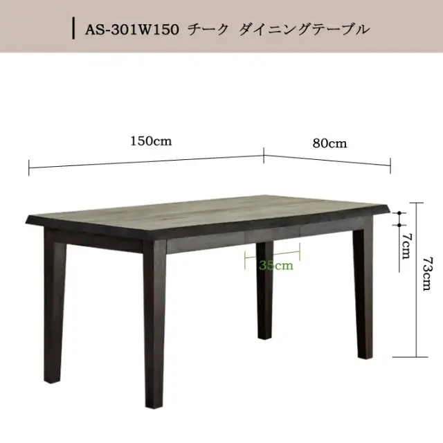 高級木材チークを贅沢に使用したテーブル アラムサリ チークダイニングテーブル 幅150cm [Alam Sari アラムサリ] 【AS-301W150】
