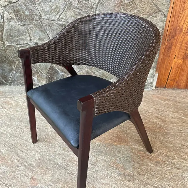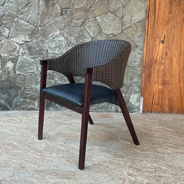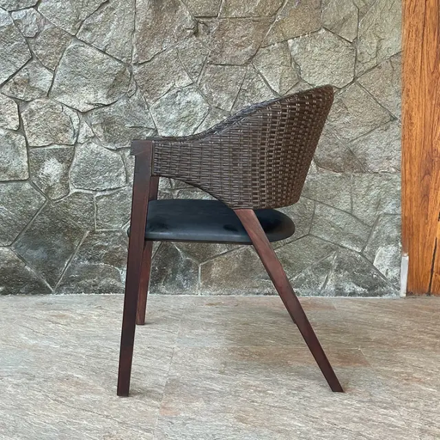 モダンでスタイリッシュなアジアンダイニングチェア チーク&シンセティックラタン ダイニングチェア(ダークブラウン) [Alam Sari アラムサリ] 【AS-309SBR】